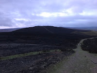 It looked as though sometime last year they had a heather burn as most of the heather has now gone. The ascent took me over the top of Moel y Faen and eventually arrived at my activation summit for this morning at 08.11 a.m. time for a quick selfie and then move just off the summit and out of the wind.